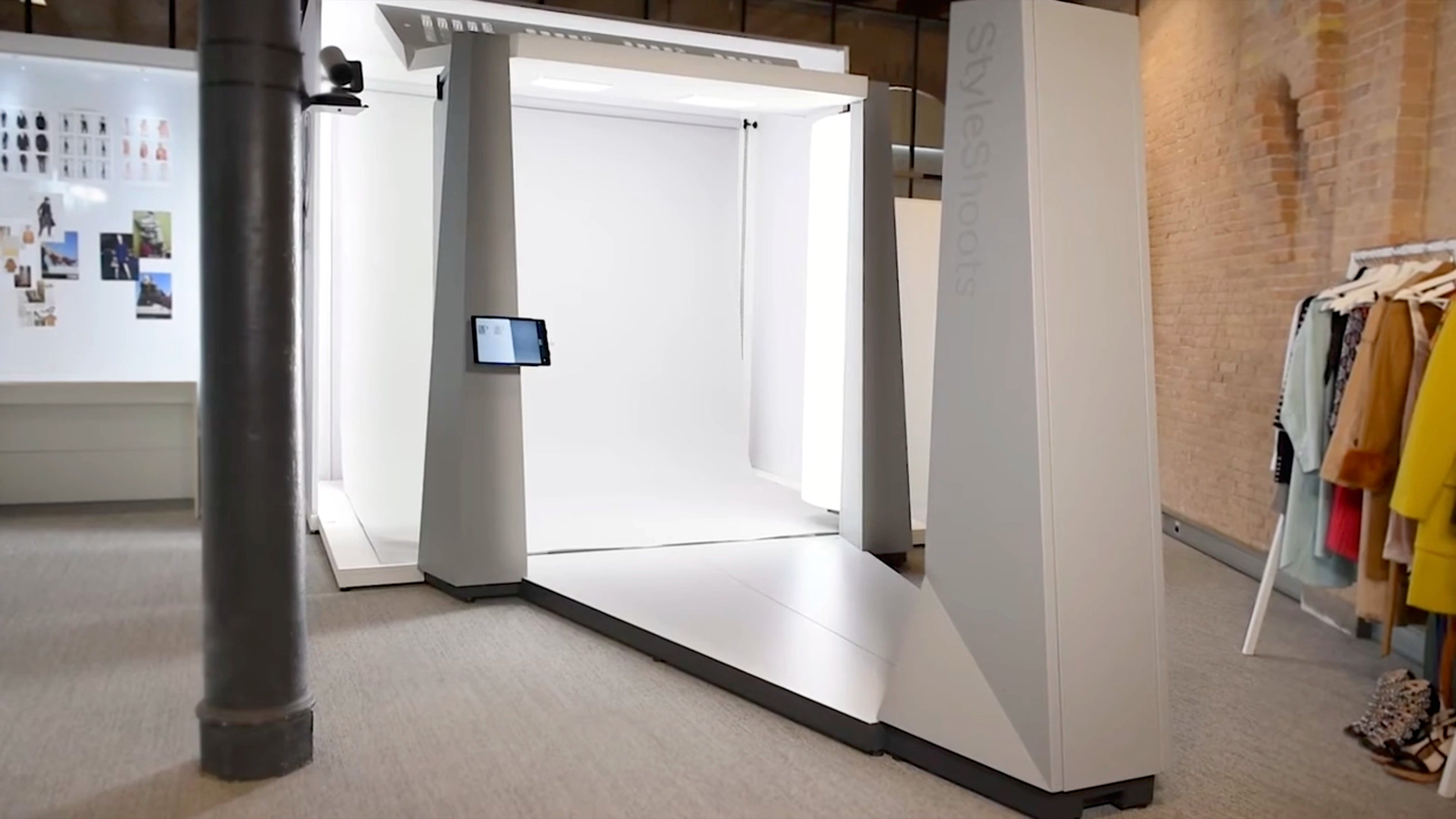 Apple Mac embedded, running the StyleShoots Core software. Apple iPad™ Pro held by an integrated swivel-mount. Custom electronics controlling Camera, Mechatronics and Lighting. |
